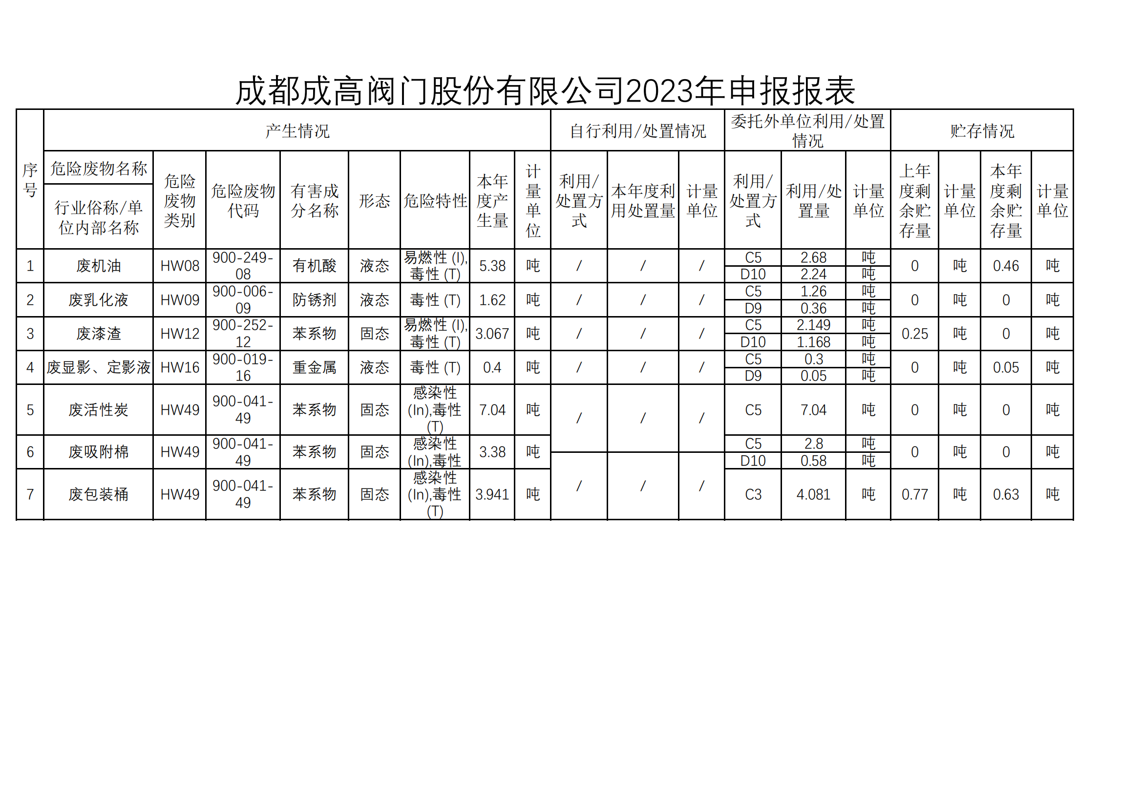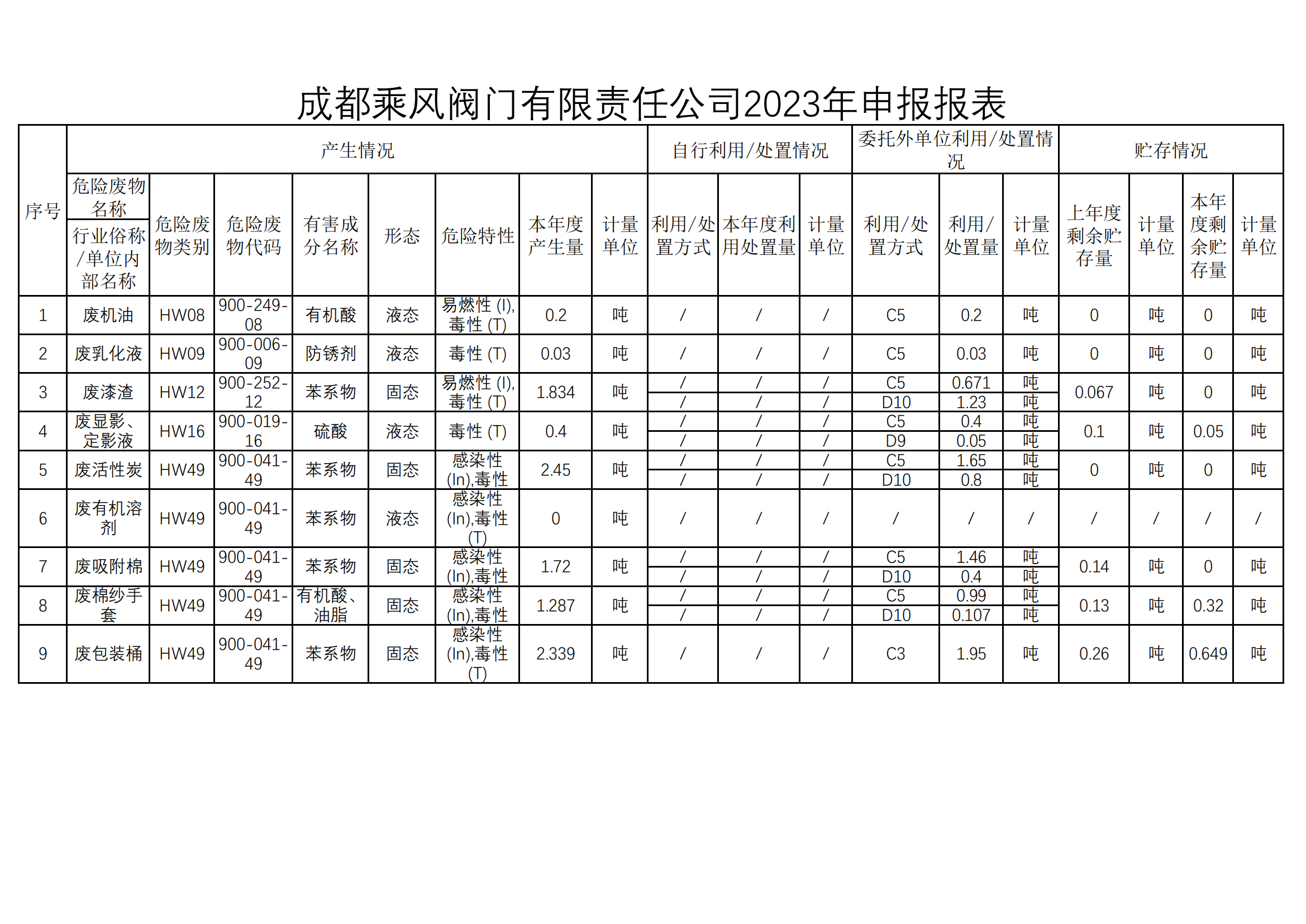 公司2023年度危险废物年报