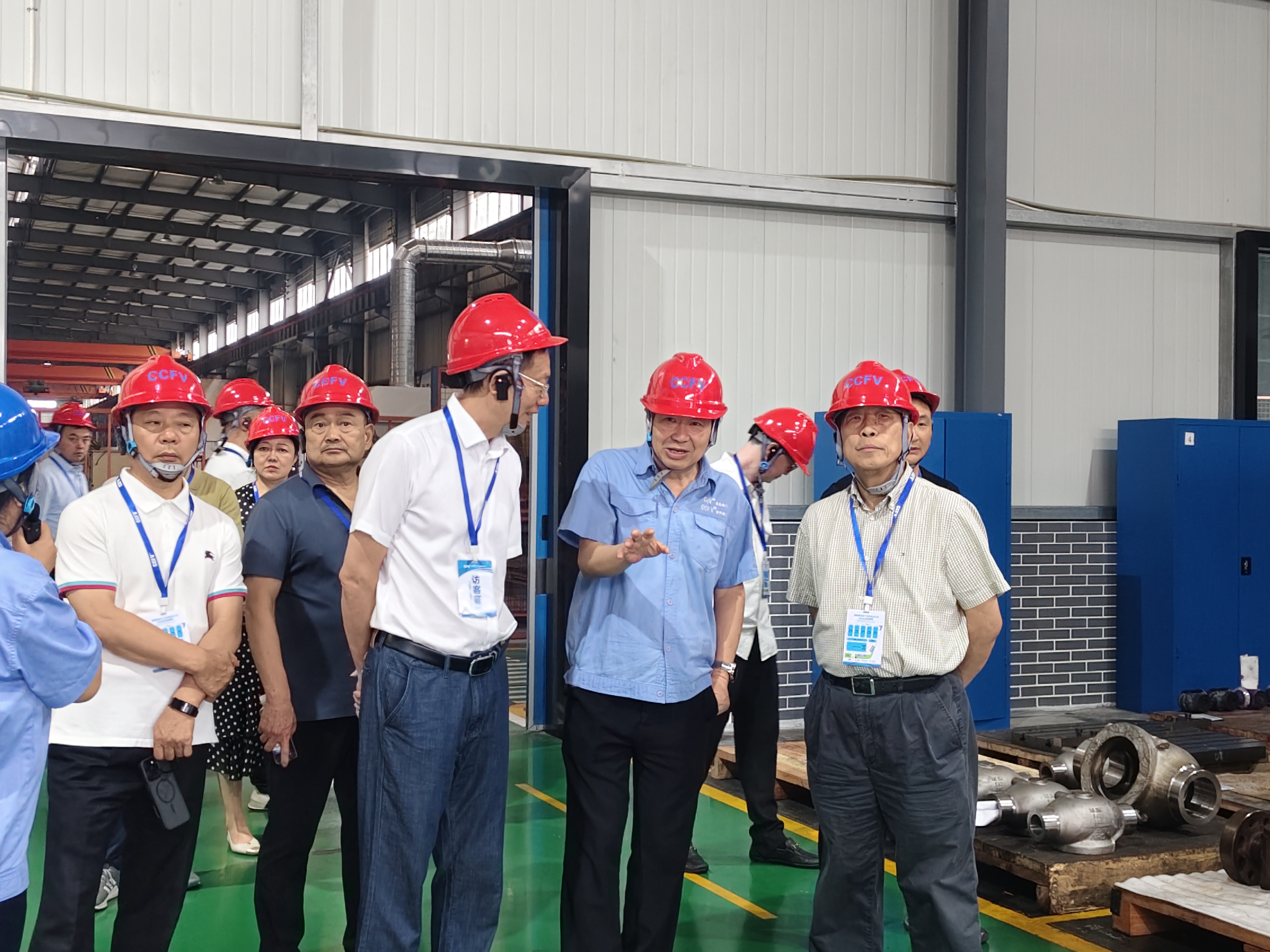 随后,协会一行前往东区车间参观,在讲解员的温馨提示下,大家有序步入生产区域。车间内机器轰鸣、秩序井然,每一个环节都彰显出成高阀门严谨的工艺管理与高效的生产能力。协会一行在参观过程中不时与现场技术人员交流,对企业的高标准制造流程和智能化生产过程表示高度认可。